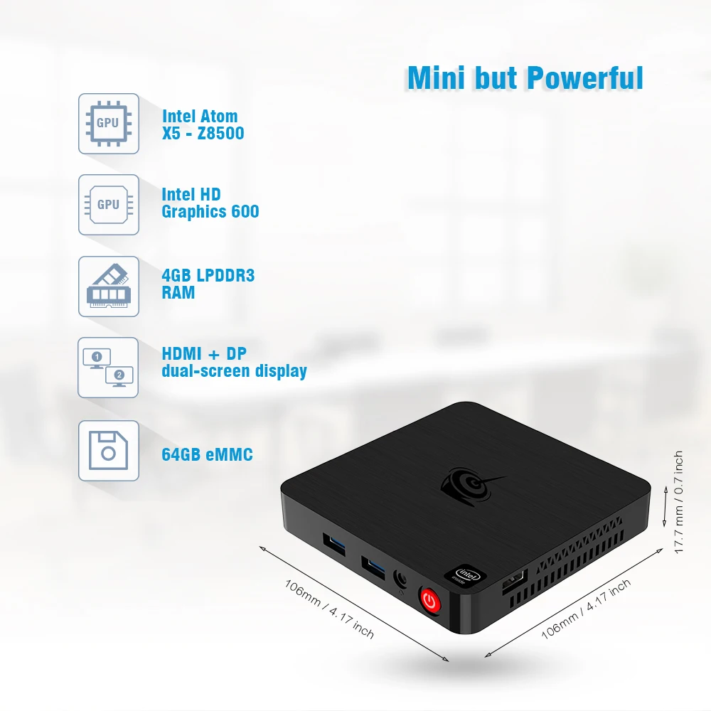 Beelink T4 Mini PC Intel Atom x5-Z8500 Windows 10 New Desktop PC 4GB+64GB 2.4/5.8GHz WiFi BT4.0 HDMI+DP Dual DisplayBuy Now On Aliexpress