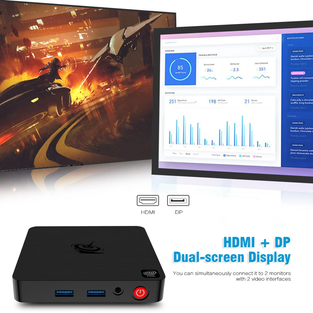 Support for fast and powerful Win 10 operation system. Perfect for working, watching TV and playing games. Rapid, stable configuration coupled with the highly Win 10. Support dual-screen, reduce the waiting time, improve your work efficiency. Say goodbye to the System freezing and buffering.