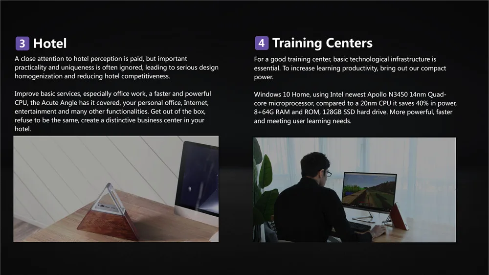 The best product you are looking for is "Acute Angle Triangular Mini PC Intel Apollo lake Celeron N3450 8GB RAM 64GB EMMC+128GB SSD 2.4G&5G WiFi Wifi Bluetooth RJ45 Port". This product is available and ready to be purchased. Get attractive discounts every time you shop in our store (aliexpress.com). Aliexpress also provides a coupon of $ 3 for the first buyer to shop there. don't forget to bookmark our store page so you can go shopping again anytime..
