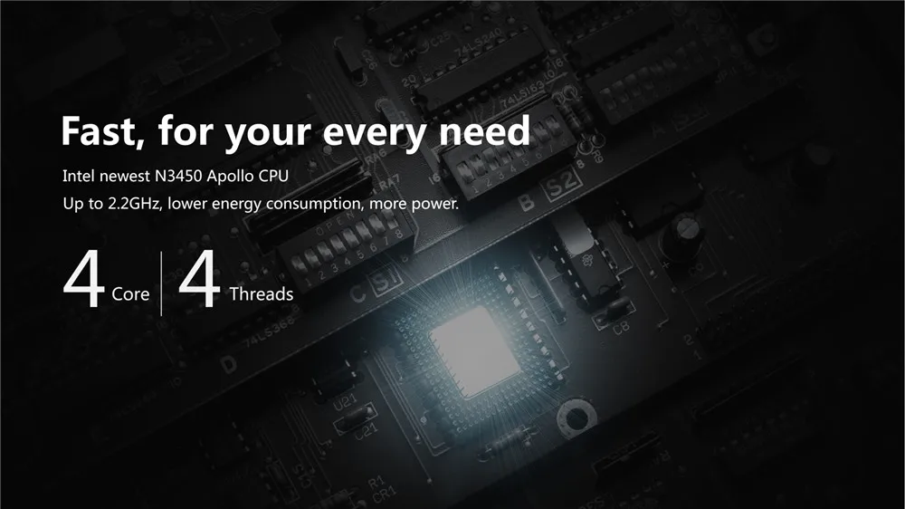 ● Intel Apollo Lake N3450 Quad Core 1.1GHz, up to 2.2GHz