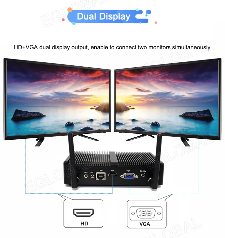 EGLOBAL Mini PC Windows 10 Intel Core i3 7167U i5 4200U Pentium Gold 4415U Fanless Palm Desktop PC HDMI VGA WiFi Nettop HTPC