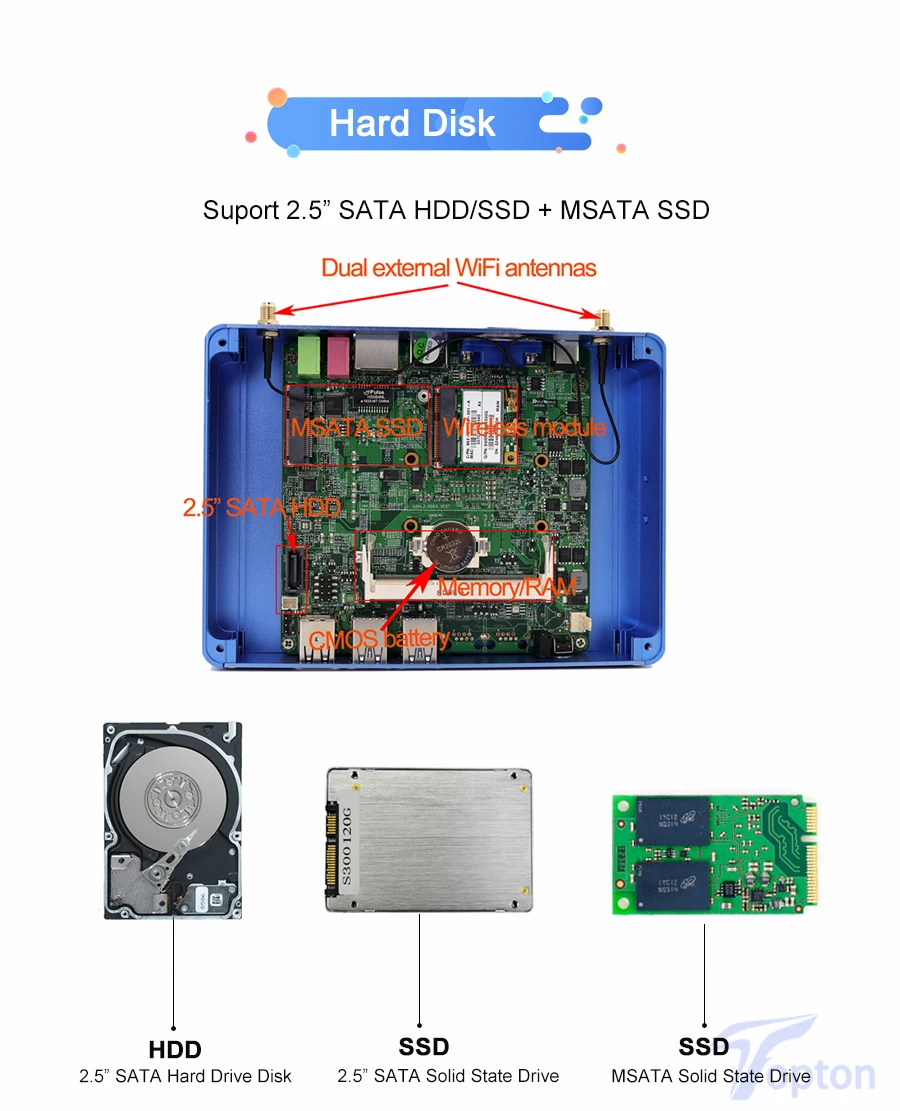 - Support 1*mSATA SSD+1*2.5'' SSD/HDD installation.