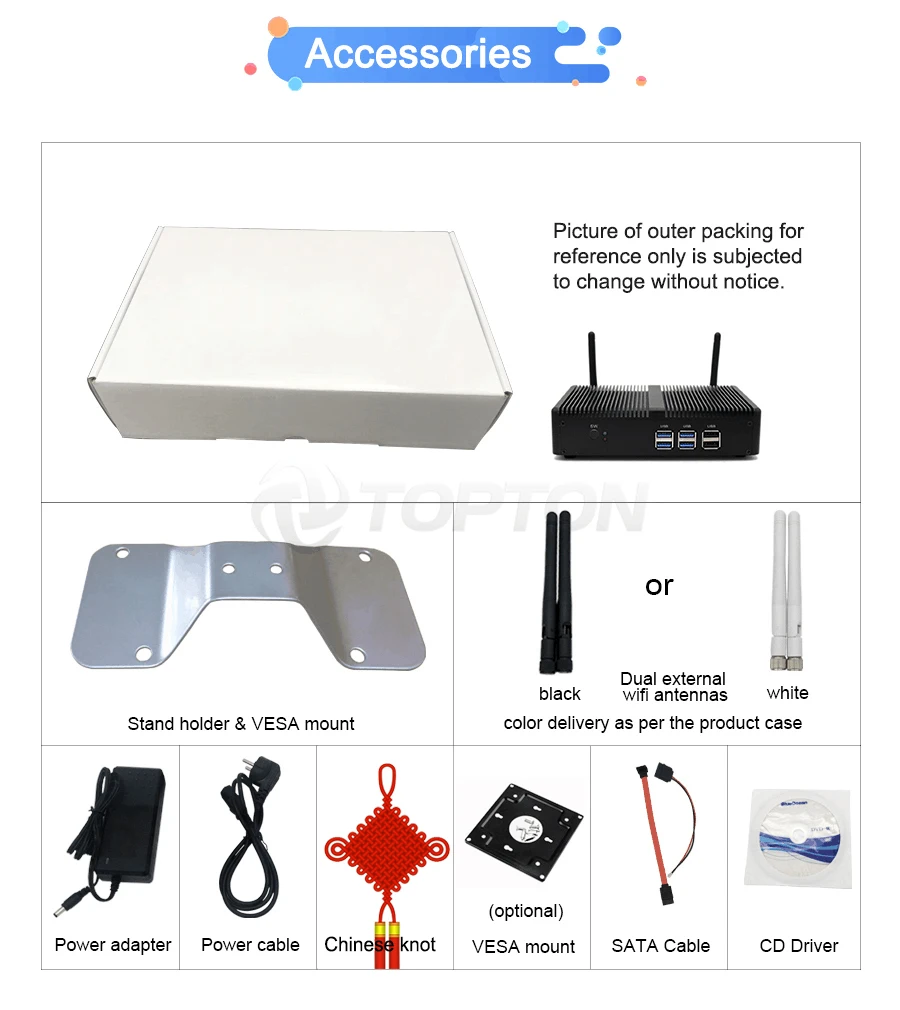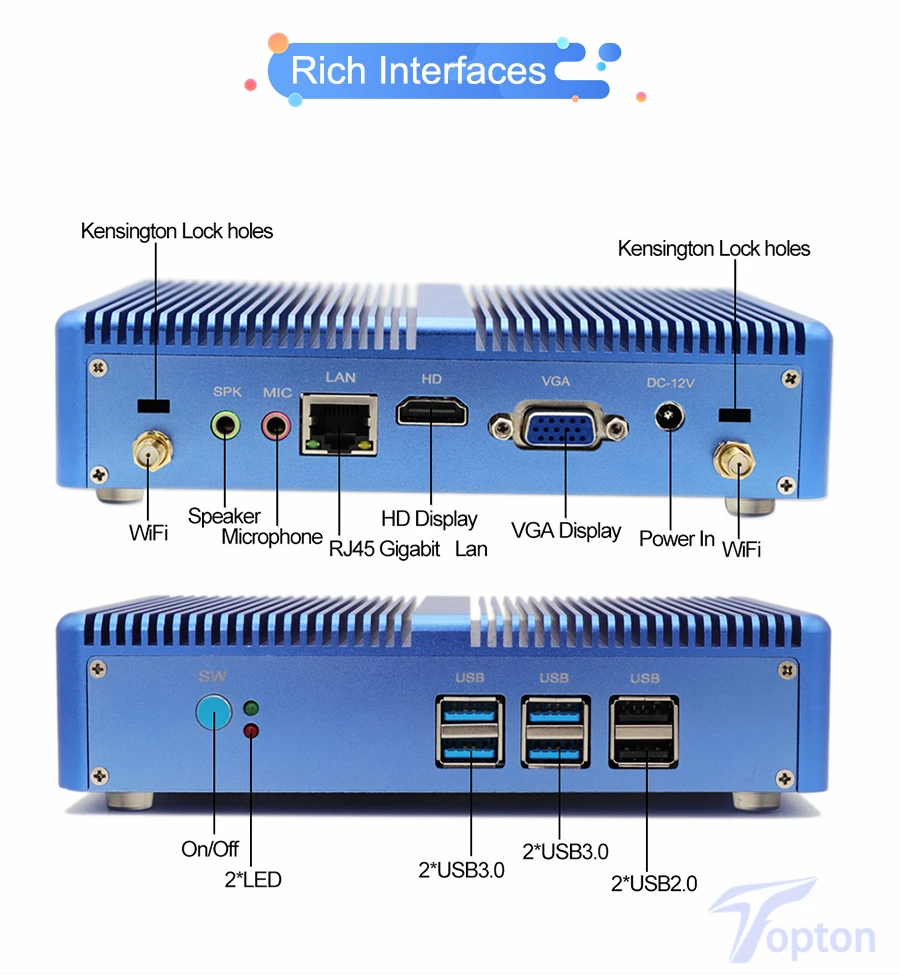 Topton fanless mini pc Intel NUC Core i3 i5 i7 cheap HDMI VGA WIN10 linux barebone small size мини пк 1Msata 2.5Inch HDD HTPC