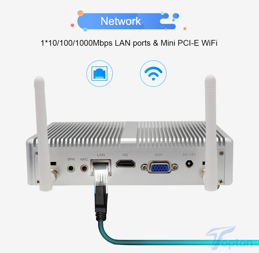 Buy Now On AliexpressMini Desktop PC Intel Celeron J1900 Quad-Cores Windows 10 Linux DDR3L mSATA SSD HDMI VGA 5*USB WiFi Gigabit LAN HTPC Fanless