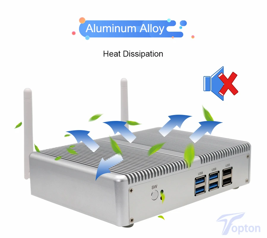 - Fanless system without cooling fan, no any noise, work as long as 24 hours.