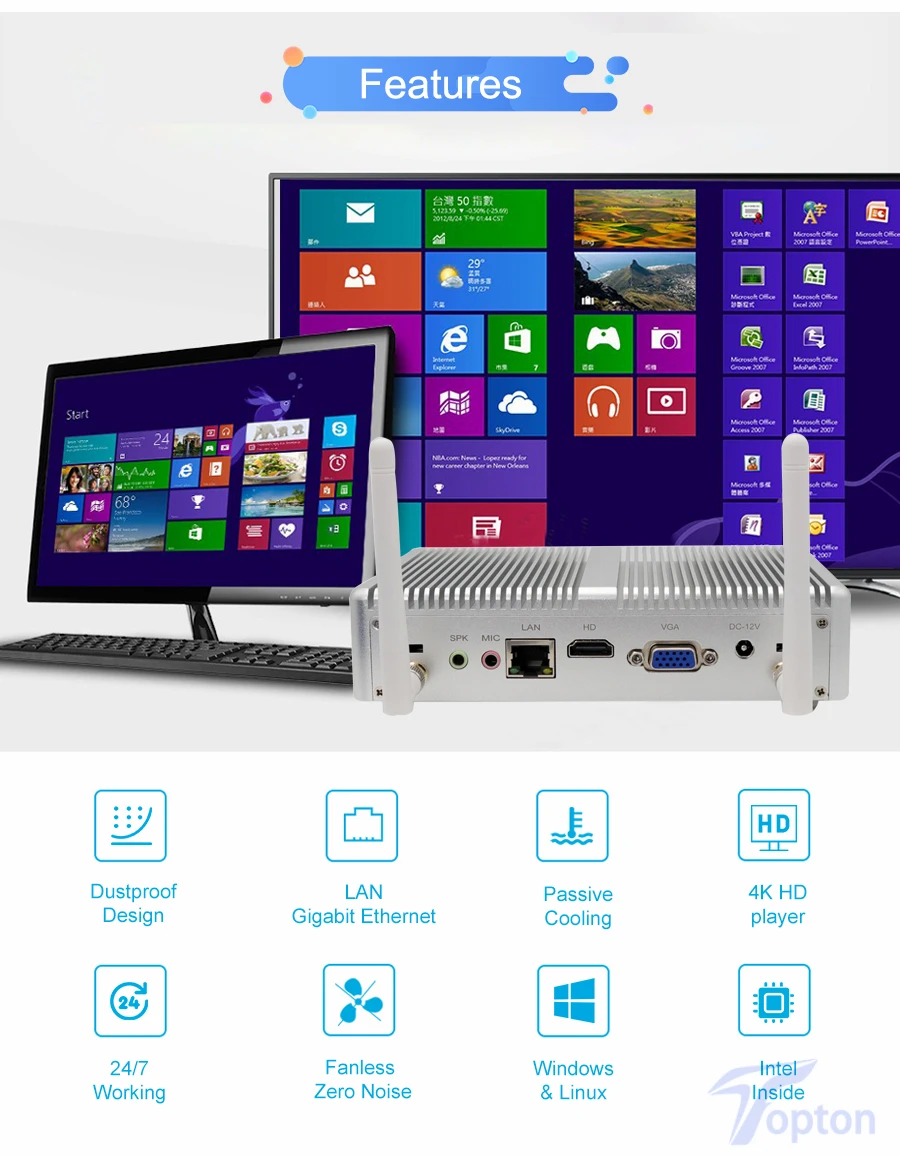| Topton fanless mini pc Intel NUC Core i3 i5 i7 cheap HDMI VGA WIN10 linux barebone small size мини пк 1Msata 2.5Inch HDD HTPC |
