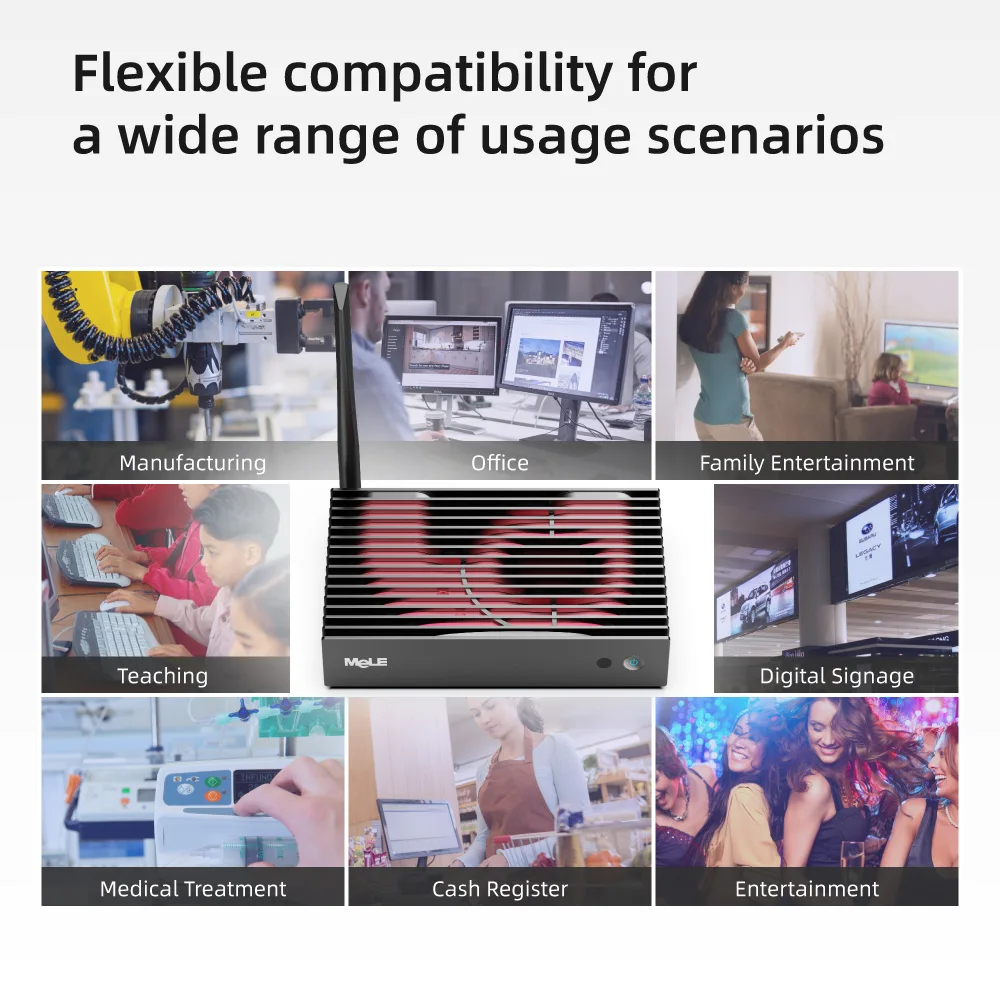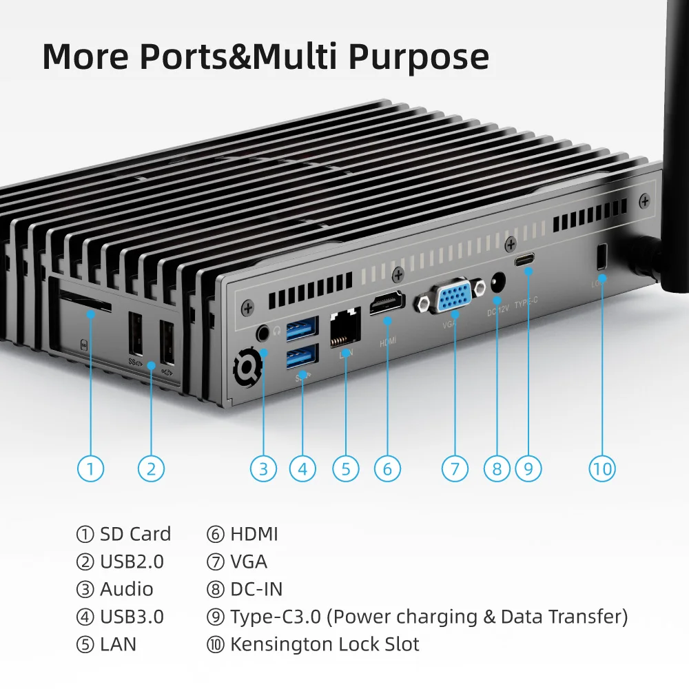 | Intel Celeron J4105 Quad Core 8GB 128GB Fanless Mini PC Windows 10 Pro MeLE Mini Desktop PC NUC HDMI 4K VGA WiFi SSD HDD Type C |