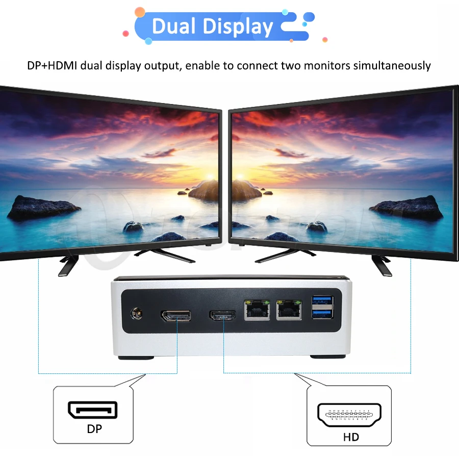 | Newest 10th Gen Mini PC Computer Intel i7-10510U 4 Core 2*DDR4 M.2 SSD 2*LANs 4K HTPC Windows 10 Linux 8*USB USB-C HDMI DP WiFi |