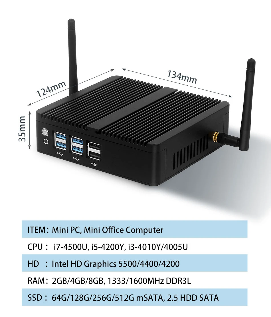 | BEBEPC Intel Core i3 4005U 4010Y i5 4200Y Mini PC DDR3L Windows 10 HDMI 8*USB WiFi Celeron 2955U CPU Fanless Compute TV BOX |