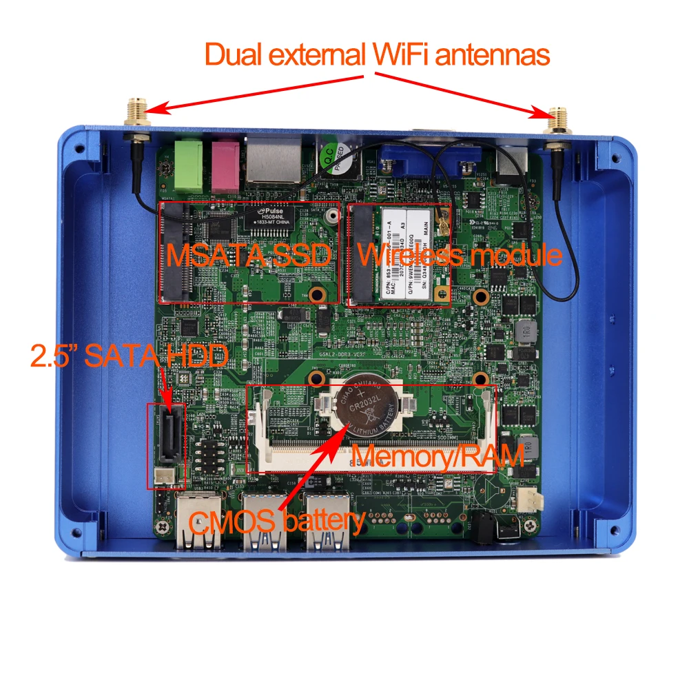 Accessories as Ram, SSD, HDD, we use famous brand: samsung, micron, SanDisk, toshiba, hynix, crucial, liteon, kingston, phison etc , What brand we use depends on our test and our stock. What brand we use depends on our test and our stock. Generally we use Msata SSD installed on Mpcie port and leave the SATA port blank for you to install 2.5'' SSD/HDD.