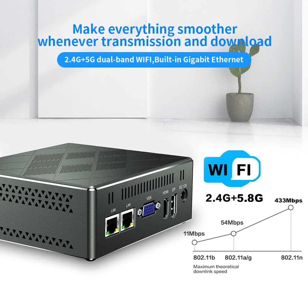 ● 2.4GHz + 5GHz dual band WiFi and Dual gigabit Ethernet, fast and stable network access