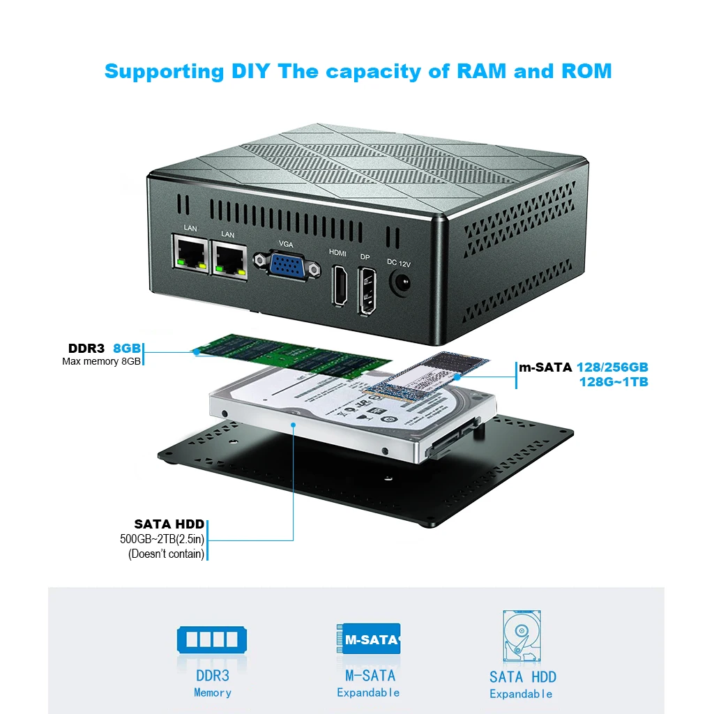 Mini PC Intel Celeron J1900 Quad-Core Windows 10 Linux DDR3L RAM mSATA SSD WiFi Gigabit LAN HDMI VGA HTPC Office ComputerBuy Now On Aliexpress