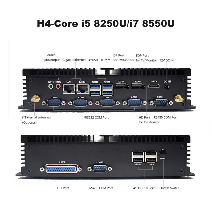 Industrial pc Intel Corei7 8565U i5 8250U Desktop 5250U Win10 Linux i3 Minipc Intel NUC 4K HD RS232 RS485 Personal Portable PC