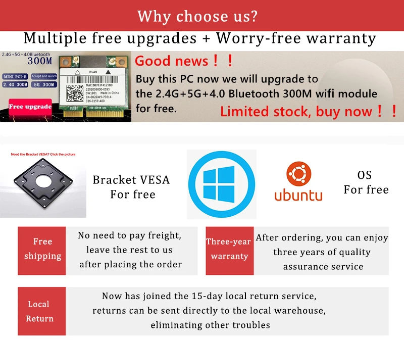 We pack our product very well, we make sure the safe arrival of the goods!!! Package Size about34*10*26CM. Attention please: 1.Our new product equip with a stent, if you used the stend the temperture will drop off 40%. If you dont use the stent, As it has no fan, the temperature will be little high, But don’t worry, we have test it nonstop running for 270 hours. Make sure it’s safe and reliable. 2.Any question please contact me, we’ll answer you as fast as I can! TKS a lot! We pack our product very well, we make sure the safe arrival of the PC Package Sizeabout34*10*26CM. In addition, we send every client a HDMI to VGA line for FREE! For our regular client, more surprise waiting for you!!! Attention please: 1.Our new product equip with a stent, if you used the stend the temperture will drop off 40%. If you dont use the stent, As it has no fan, the temperature will be little high, But don’t worry, we have test it nonstop running for 270 hours. Make sure it’s safe and reliable. 2. Cause my native language is Chinese, so any question please contact me, we’ll answer you as fast as I can! TKS a lot! Best wishes from China.