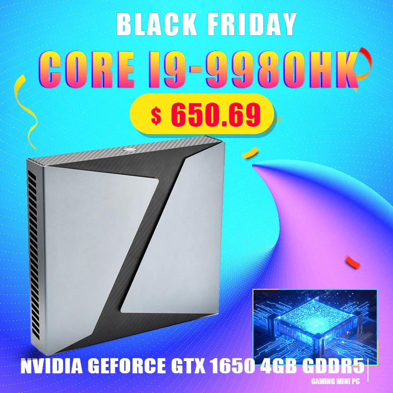 Powerful Gaming Mini Pc Intel Core i9 9980HK 8 cores 16 threads Nvidia GTX1650 4G Graphics Desktop Computer HDMI DP Display WIFI