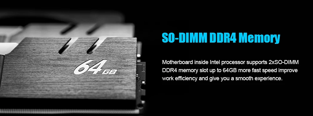 - 2xSODIMM DDR4 memory slot up to 64GB more powerful performance improve work efficiency and give you a smooth experience.
