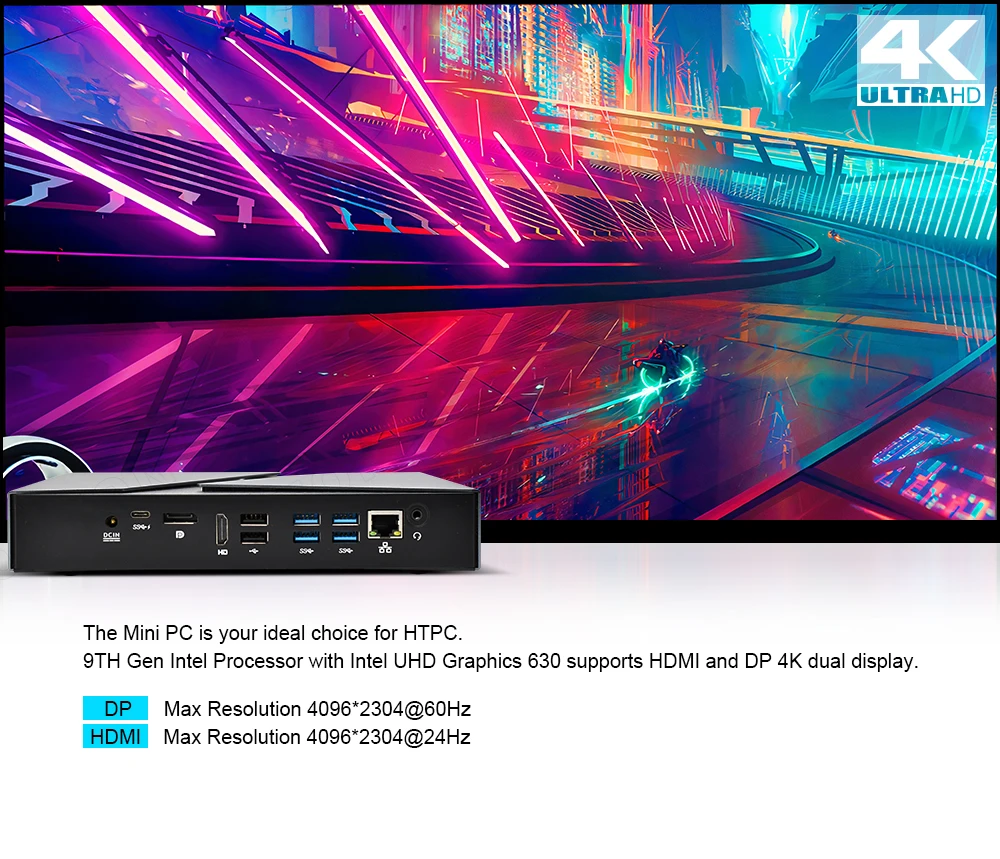 - Support HDMI and DP for 4K display output synchronously.